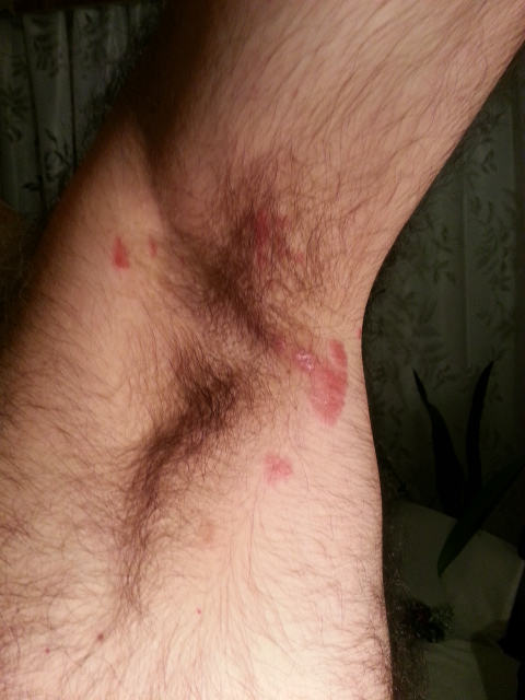 Dobry den.Chcem sa spytat na moj problem,ktorym su cervene flaky v podpazusi.Niekedy su vyrazne cervene, aj trocha stipu-hlavne po sprchovani a niekedy su troska ukludnene- vid foto. Zacalo to najprv jednym flakom pod jednym podpazusim a do 4 mesiacov sa to rozsirilo na obidve podpazusia.Co sa tyka mojej osoby tak nefajcim, nepijem tvrdy alkohol,maximalne 2 piva denne,alebo 2 dcl cerveneho vina akurat pred tromi rokmi som zacal jest stiplave potraviny-chilli papricky a feferony.Tolko strucne ohladom mojho problemu,posielam Vam fotky obidvoch podpazusi a tesim sa na odpoved.