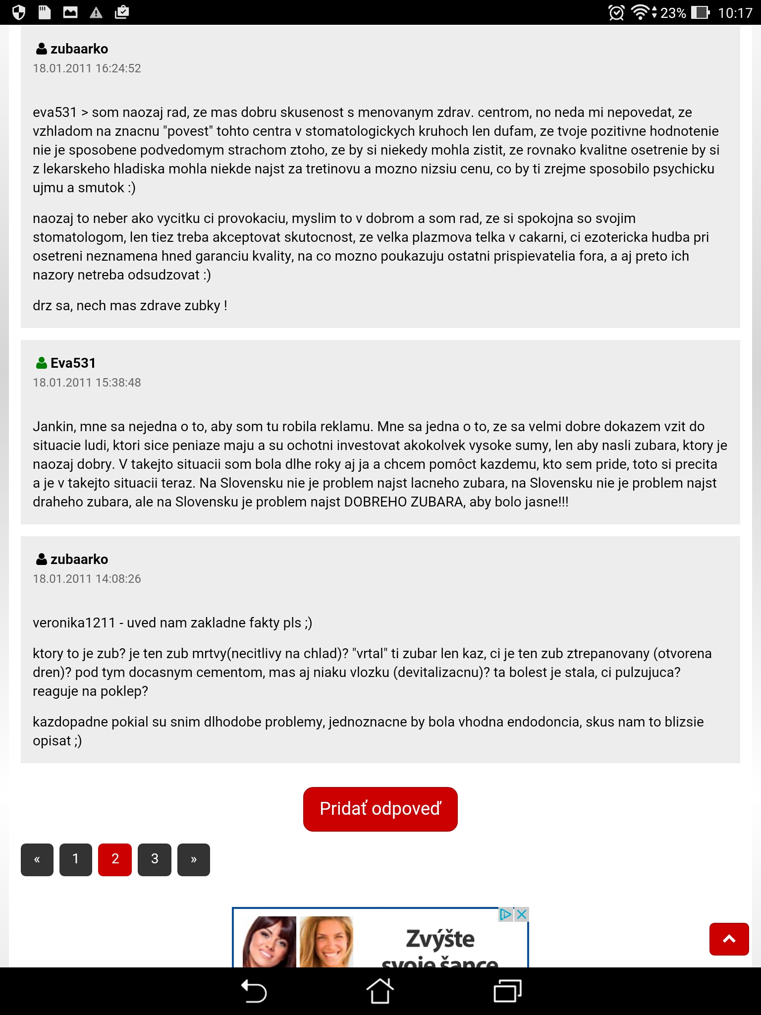 nakoľko teraz riešim dva mesiace svoj zuby tak som sa rozhodla napisat nieco ostatnym "zufalym" dusiam. Totiz v novembri mi zubarka robila 4 kazy, dnes mam o tri zuby menej. Dve mi sice ostali v ustach, ale museli mi na nich spravit resekciu korenovych hrotov. Kto na tom bol, vie o com hovorim.